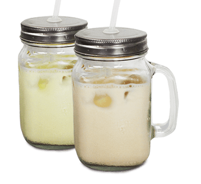 カクテルベースのサイダーやミルクなど多数準備。豆から挽いたオリジナルのブレンドコーヒーもあります。